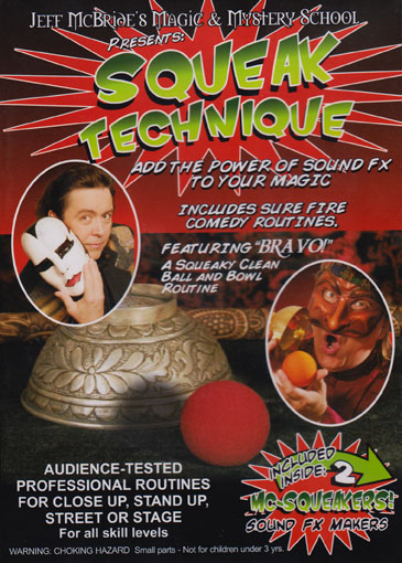 Jeff McBride not only teaches you all about squeakers, but he is also very entertaining in demonstrating his creative ways of using squeakers, including the Fly, the Robot, and his Bravo routine. After being inspired by this video you will probably come up with your own ideas for using a squeaker in your routines. Highly recommended.